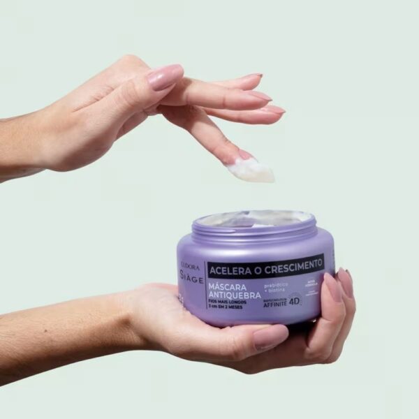 A Máscara Capilar Eudora Siàge Acelera o Crescimento é o tratamento intensivo fundamental para quem deseja cabelos longos, densos e livres de quebra. Ela atua profundamente na fibra capilar, promovendo uma hidratação e nutrição potentes que recuperam a força dos fios fragilizados. Sua principal missão é garantir que o cabelo não se quebre no meio do caminho, permitindo que ele atinja o comprimento desejado com saúde da raiz às pontas.